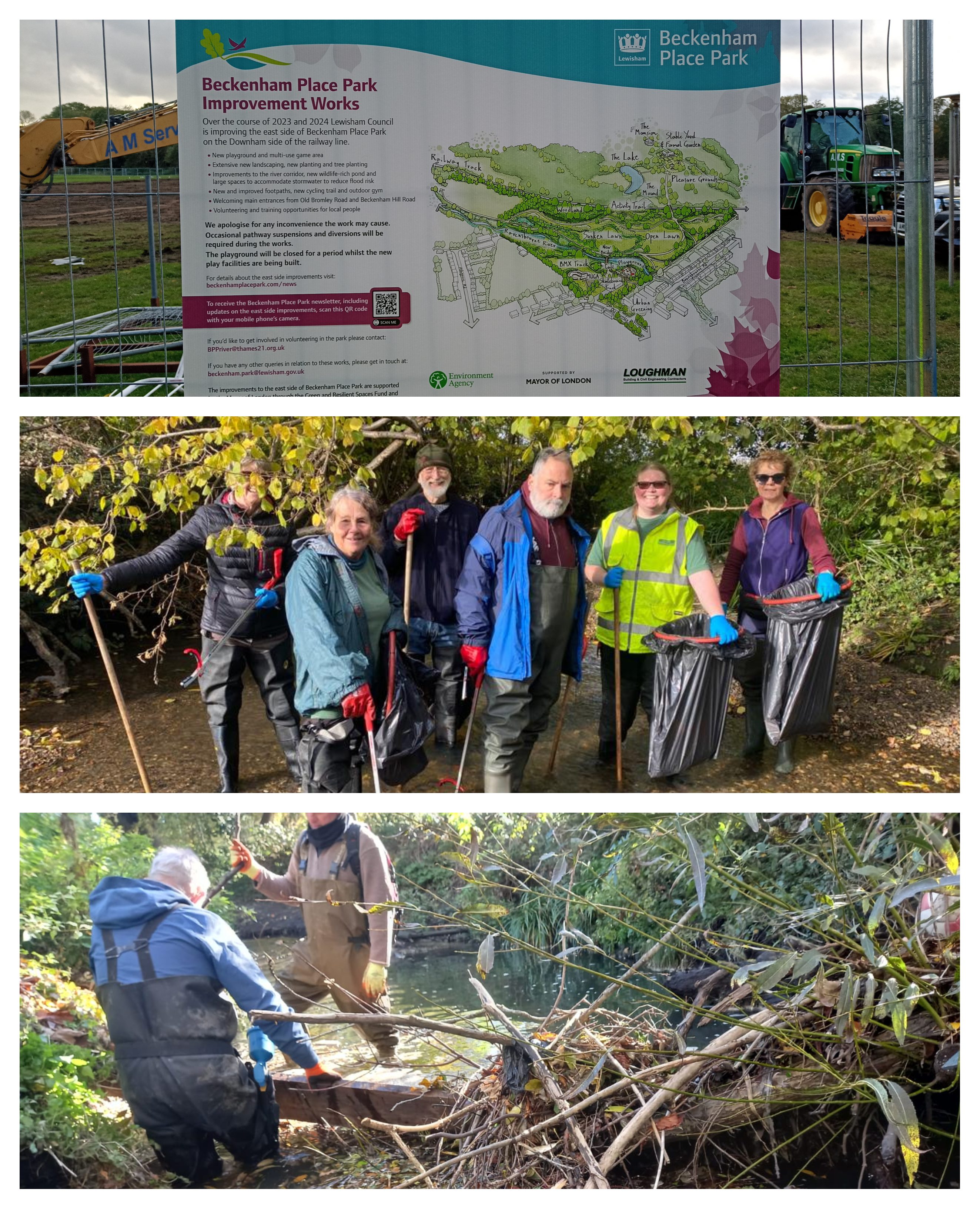 The volunteers have been all across the borough this month, starting with visiting the regeneration works at Beckenham Place Park (East). We also cleared trapped debris from the recent heavy rains, especially with fallen trees down over the channel.