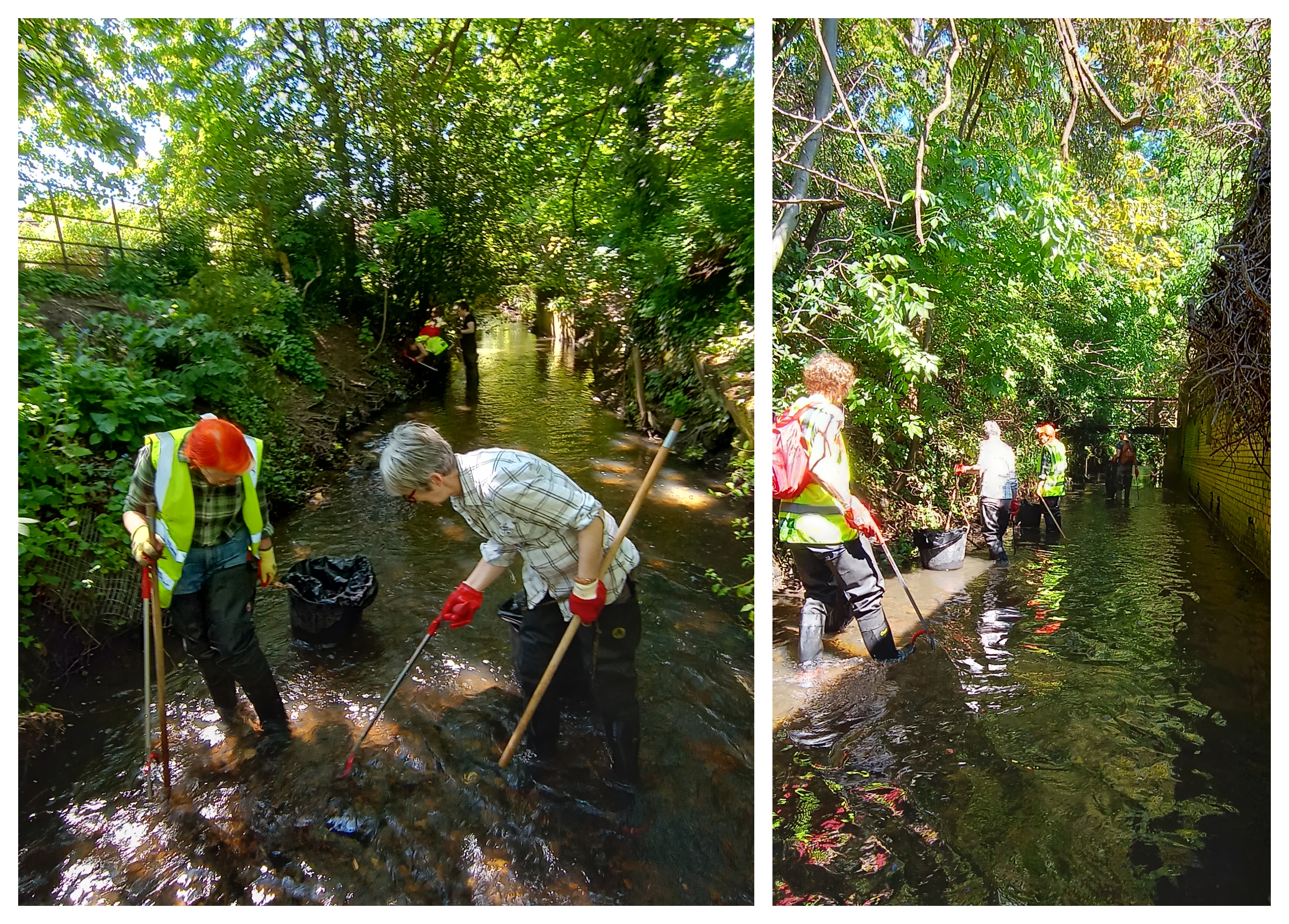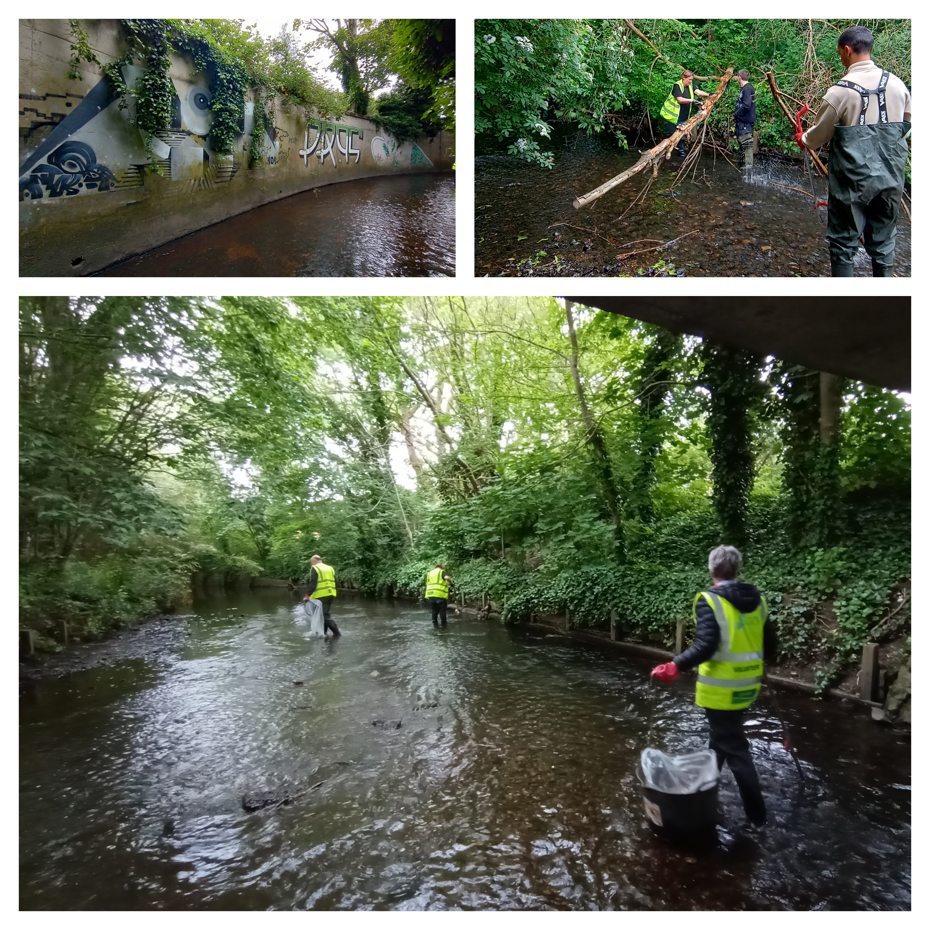 May was a month of variety with tasks. Starting off with a wade from Ladywell Fields (North) to Riverdale Sculpture Park, where we both litter picked and did some maintenance on lower tree branches/ fallen trees that were blocking the river channel.