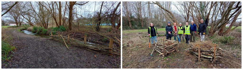 We then ventured further south into the borough to Chinbrook Meadows, where we have to keep on top of teh growth of the willows along the stretch of river (and overhanging the paths and boardwalks). In addition to dead hedges, woven fences we’ve also created some hexagonal and pentagonal dead wood piles to allow the sneadings to be kept on site in a neat but still great for wildlife purpose! These worked really well, so look out for them in other parks across the borough soon.